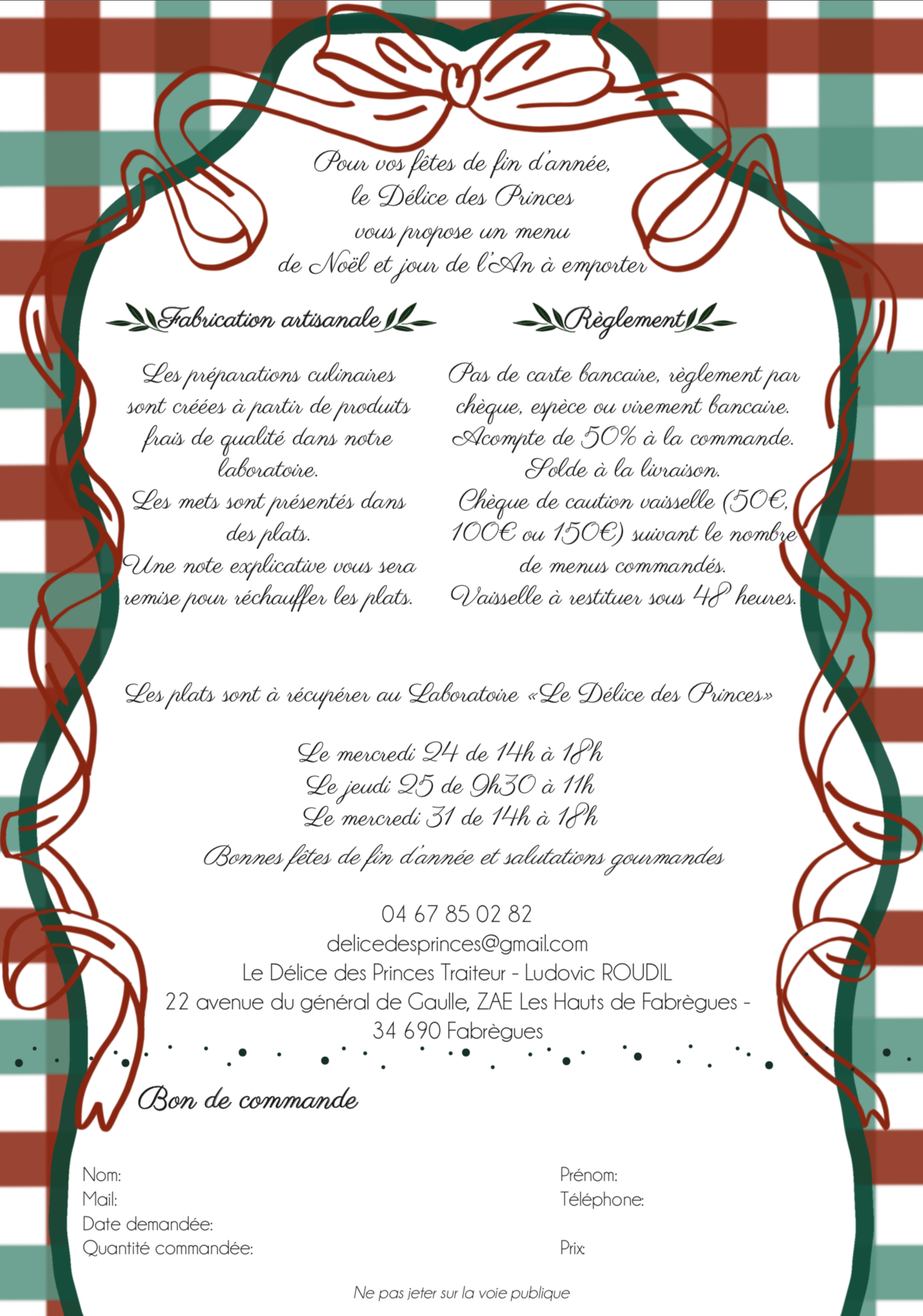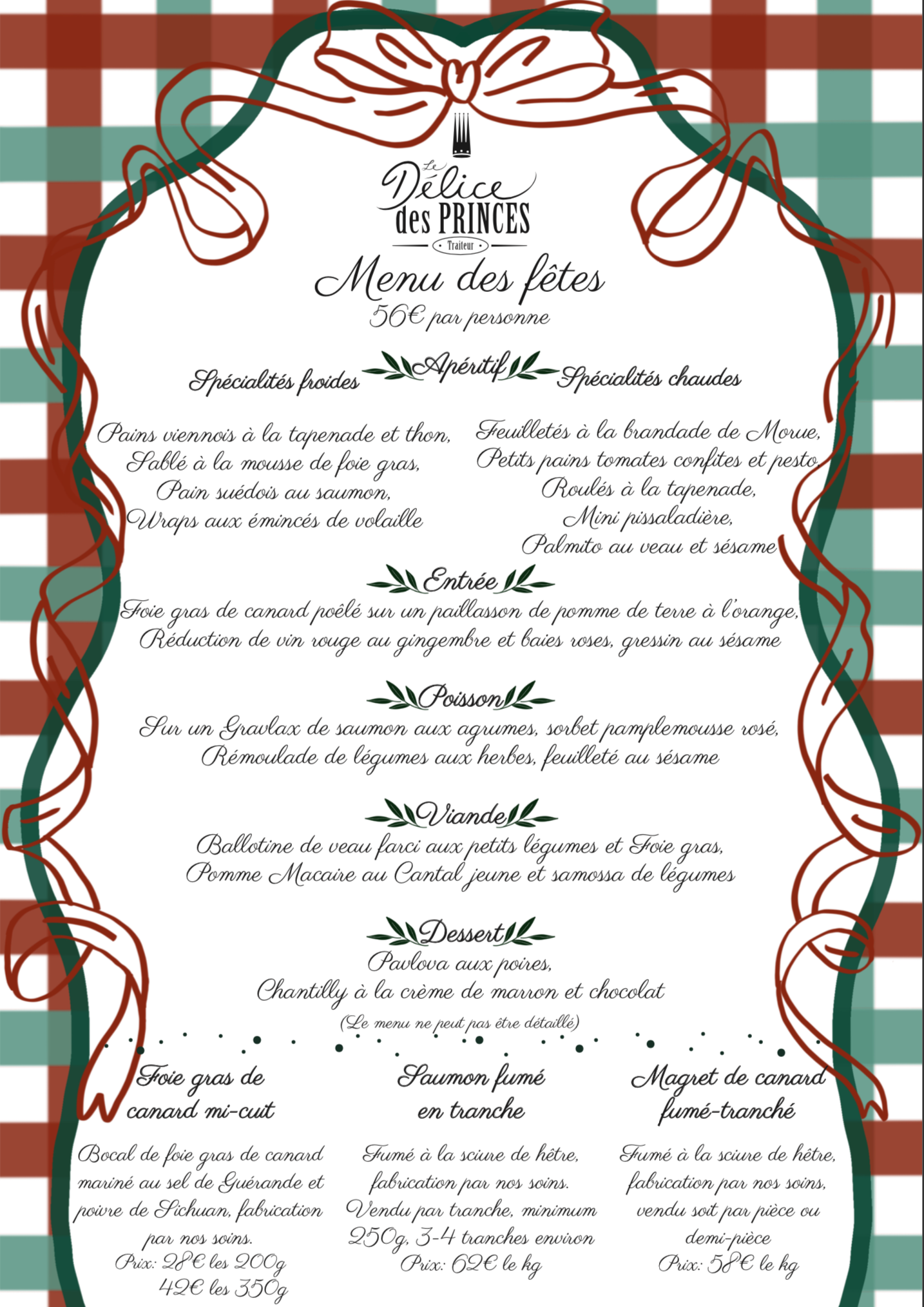 Comme chaque année, le Délice des Princes prépare une formule de vente à emporter pour Noel et jour de l’An.